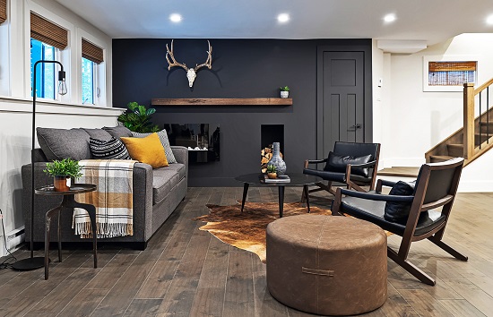 Turn your unused basement space into a cozy living area.